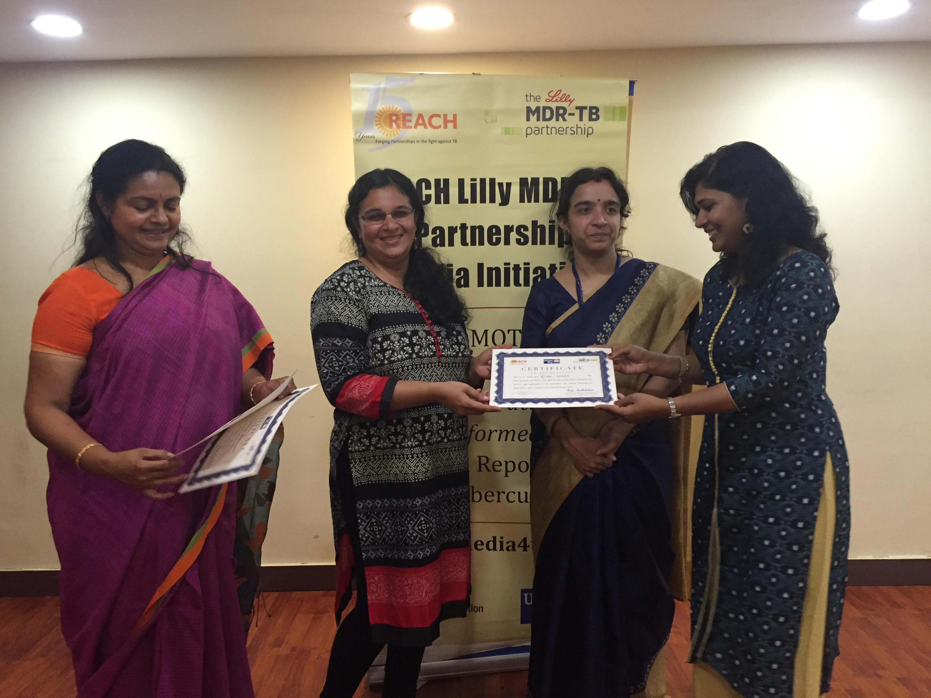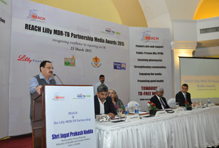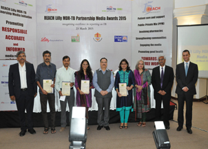 English reporting and local language reporting. The sixth edition of the REACH Lilly MDR-TB Partnership Media Awards was held in New Delhi in March 2016 and co-hosted by REACH, Lilly and USAID. In 2015-16, REACH received 23 entries from 13 journalists in the English category and 28 entries from 16 journalists in the Local Language category. In all, we received 51 valid entries from 29 journalists. Four journalists were awarded at the occasion, two in each English and local language categories.