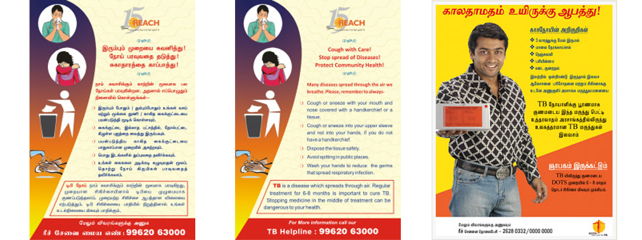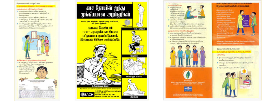 Over the years, REACH has developed several posters, leaflets, pamphlets and other communication material on TB in both English and Tamil. If you would like to receive printable versions of any of these, please write to us at reach4tb@gmail.com or rashmika.reach@gmail.com