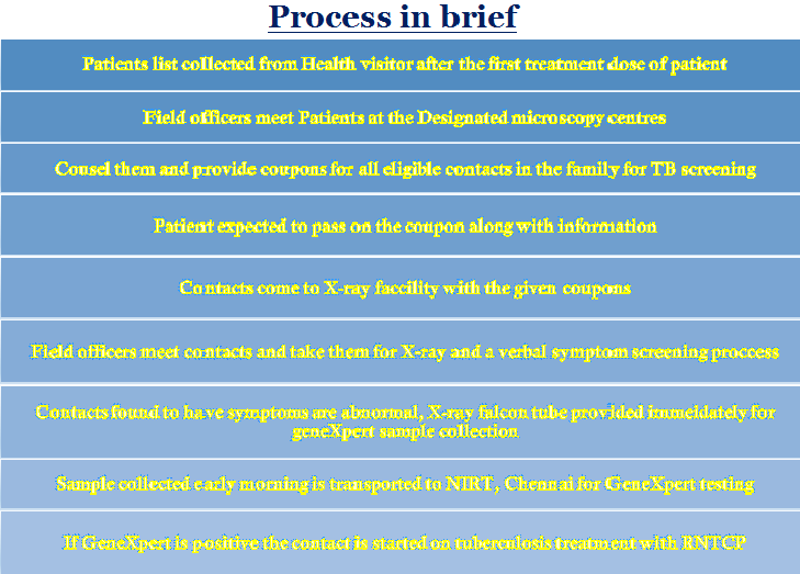 IMPACT initiative, the second phase of TB REACH initiative, aims to increase case detection amongst contacts of TB patients by encouraging them to undergo screening test followed by GeneXpert test to detect tuberculosis.
